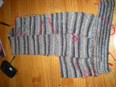 Eine Herrenjacke, eigentlich Wester, aber ich werde auf Wunsch Ärmel dran stricken.